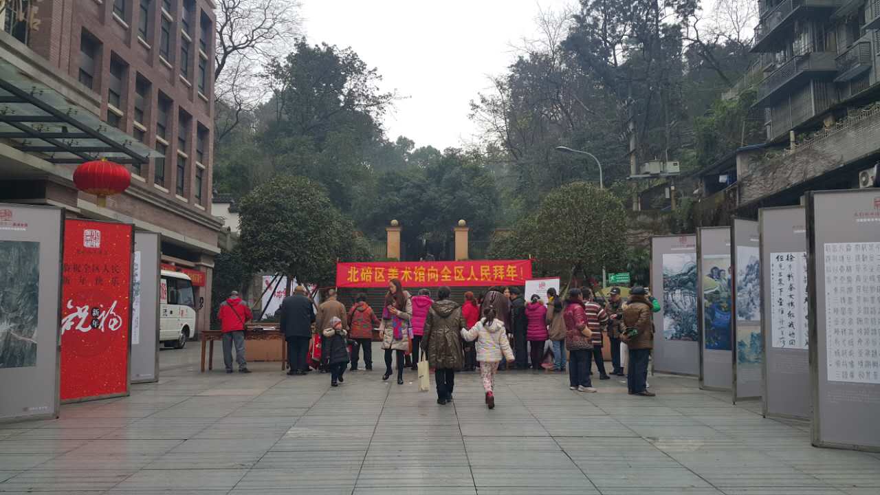 由北碚区美术馆主办, 北碚区美术馆、朝阳街道承办的迎新春送祝福“中国梦·画说乡愁”艺术作品图录巡展,于2016年2月2日在北碚公园门口举行。活动展出的图录书画及工艺美术作品共计100余件,接待人数千余人。