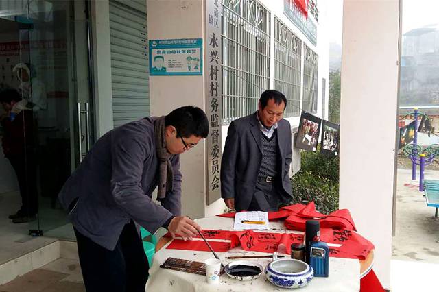 值此新春佳节来临之际,北碚区美术馆下基层送祝福来到了柳荫镇重点扶贫村永兴村,为当地村民书写春联、拍摄全家福,送去新年的祝福。
