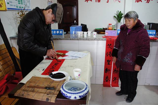 这次活动中,我馆特邀书法家朱菲范、刘成侃免费为村民们书写了上百余 幅春联。我馆艺术家还为村民们拍摄全家福,并现场打印留念,把充满喜悦和幸福的美好瞬间送到了村民手中。此外,现场还举行了“中国梦·我的梦”艺术作品进 万家巡展,让村民们在收到对联和照片的同时,也能够欣赏到去年我区艺术家在“中国梦”文艺采风创作活动中创作的作品。
