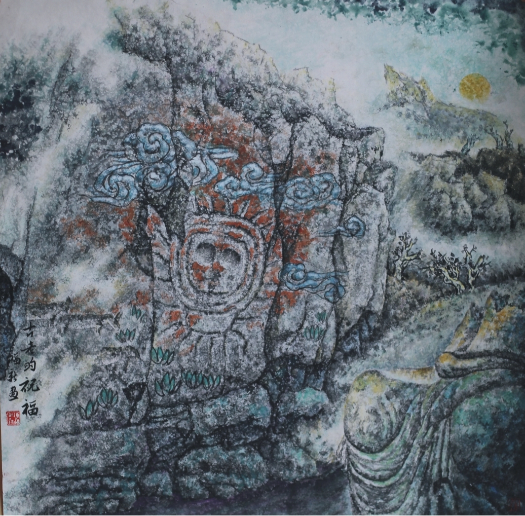 陈福新 国画《远古的祝福》 99×99cm.jpg