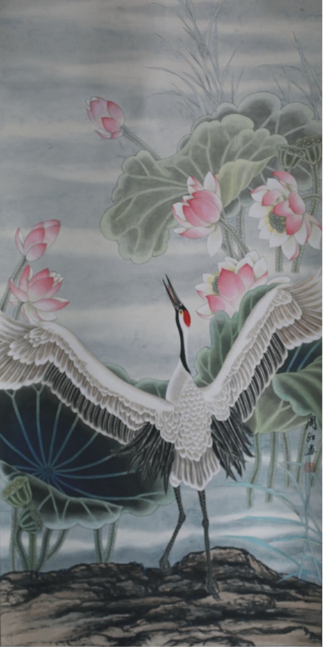 周红 国画 《鹤》133×65cm