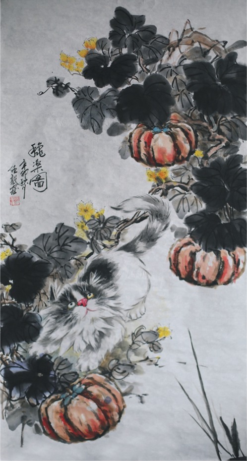 任毅 国画《秋乐图》177×95cm